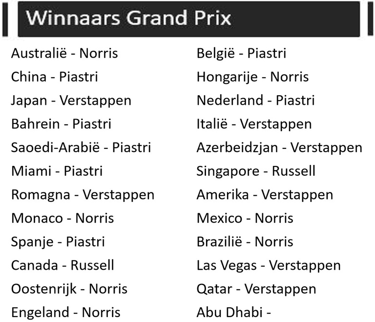 En dan die televisieregistratie. Man o man wat een drama. Jaar in jaar uit dezelfde beelden vanwege dezelfde opstelling van de camera’s. En dan weten ze ook nog vaak op de verkeerde momenten te schakelen naar waar nog enig actie is. En dan die prijsuitreiking! Close-ups van de fanfare, beelden van monteurs van diverse teams tijdens het gespeelde volkslied van de winnaar. Een shot van veraf op het podium waar je de drie coureurs amper kan herkennen is alles wat er in beeld komt. Uitreiking van de prijzen, ze beginnen met de winnaar, waarom niet met nummer drie?