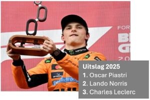 Oscar Piastri werd de winnaar van de Grand Prix van België. In een door flinke regenval lang uitgestelde start bleef Piastro zijn teamgenoot Lando Norris voor. Piastri ’s voorsprong in de titelstrijd bedraagt daardoor na de GP van België 16 punten op Norris. Onze landgenoot Max Verstappen eindigde op zijn favoriete circuit als vierde achter Charles Leclerc. Verstappen kon zijn doelstelling, het behalen van P3, uiteindelijk dus niet bewerkstelligen. George Russell werd vijfde, voor Alexander Albon en de sterk opgekomen Lewis Hamilton die uit de pitstraat was gestart. Liam Lawson, Gabriel Bortoleto en Pierre Gasly gingen er met de resterende punten vandoor. Red Bull rijder Yuki Tsunoda kwam achter Bearman en Hülkenberg als dertiende over de eindstreep