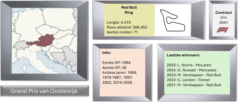 Formule1start.nl probeert de voorbeschouwing van elke Grand Prix te plaatsen op de zondag voor het Formule 1 weekend waarop deze Grand Prix plaats vind. Bij opeenvolgende GP weekeinden (bijvoorbeeld een 'triple header') zal dat op de maandag zijn dat deze geplaatst wordt. De kans bestaat dat er na plaatsing van de voorbeschouwing nieuws of veranderingen naar buiten komen, die wij niet konden melden in het verslag. Wij zijn ons bewust van het risico maar willen niet van de redelijk vroege voorbeschouwing afwijken. Op de homepage zullen we meestal wel vermelden wat deze eventuele veranderingen zijn. Op deze plek verschijnt dus een week voor de Grand Prix van Oostenrijk een uitgebreide voorbeschouwing over dit komende weekend.